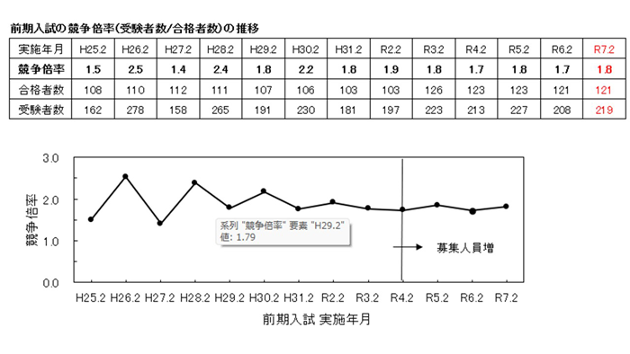 ※ 令和7年度入試(令和7年2月実施)のデータを追加し、表・グラフを更新しました。(2025年8月3日)